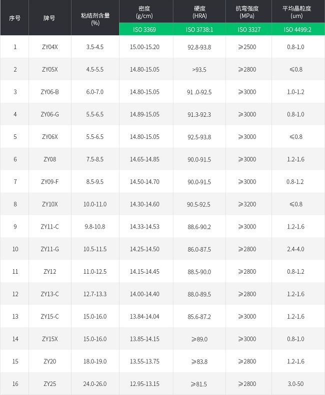 鎢鈷硬質合金是由碳化鎢和金屬鈷組成的硬質合金,這類合金是產量最大、用途最廣的一類。西迪技術股份有限公司硬質合金牌號中也以鎢鈷類硬質合金占比最多。其詳細性能可通過下面的牌號表可以看出,供客戶不同需求做選擇參考。